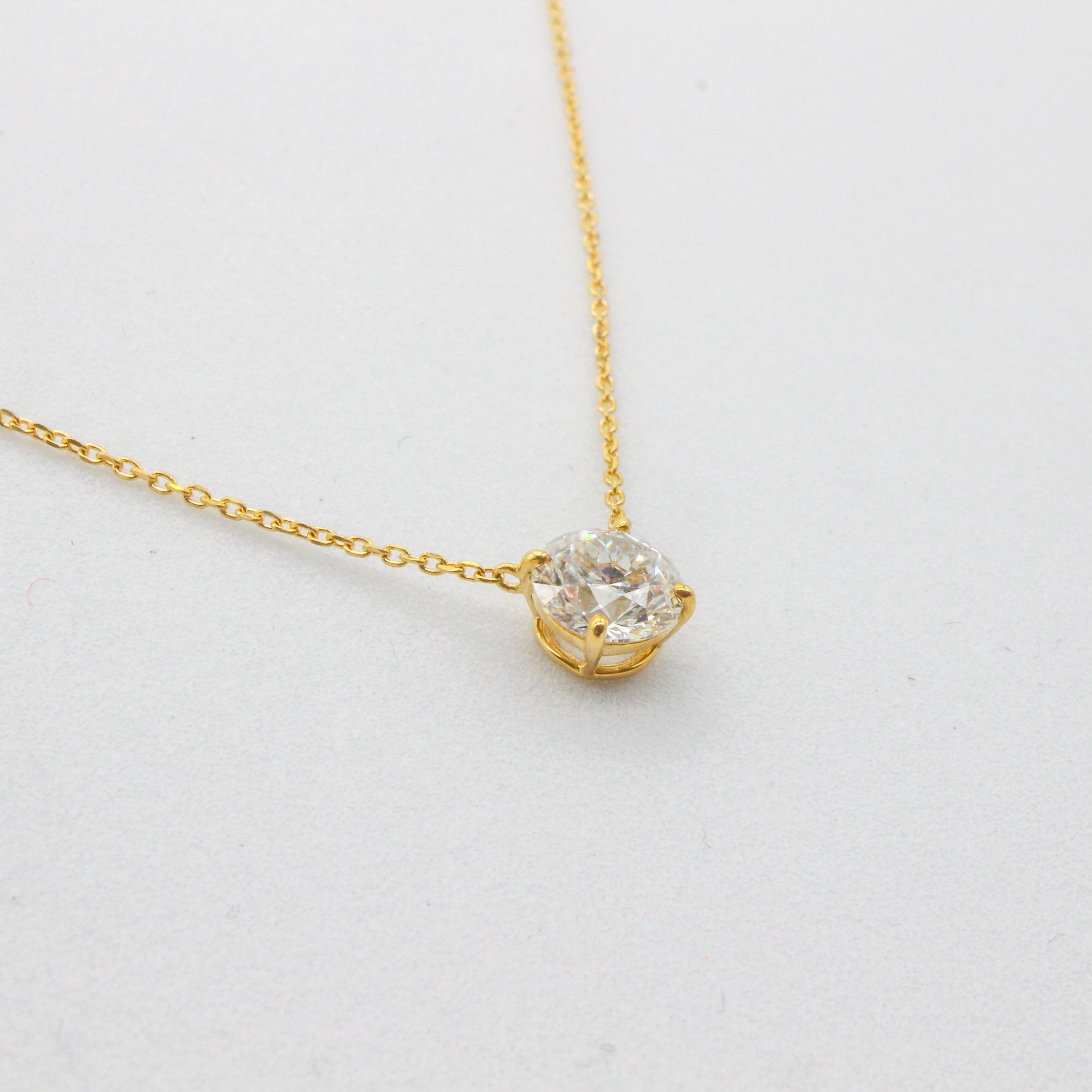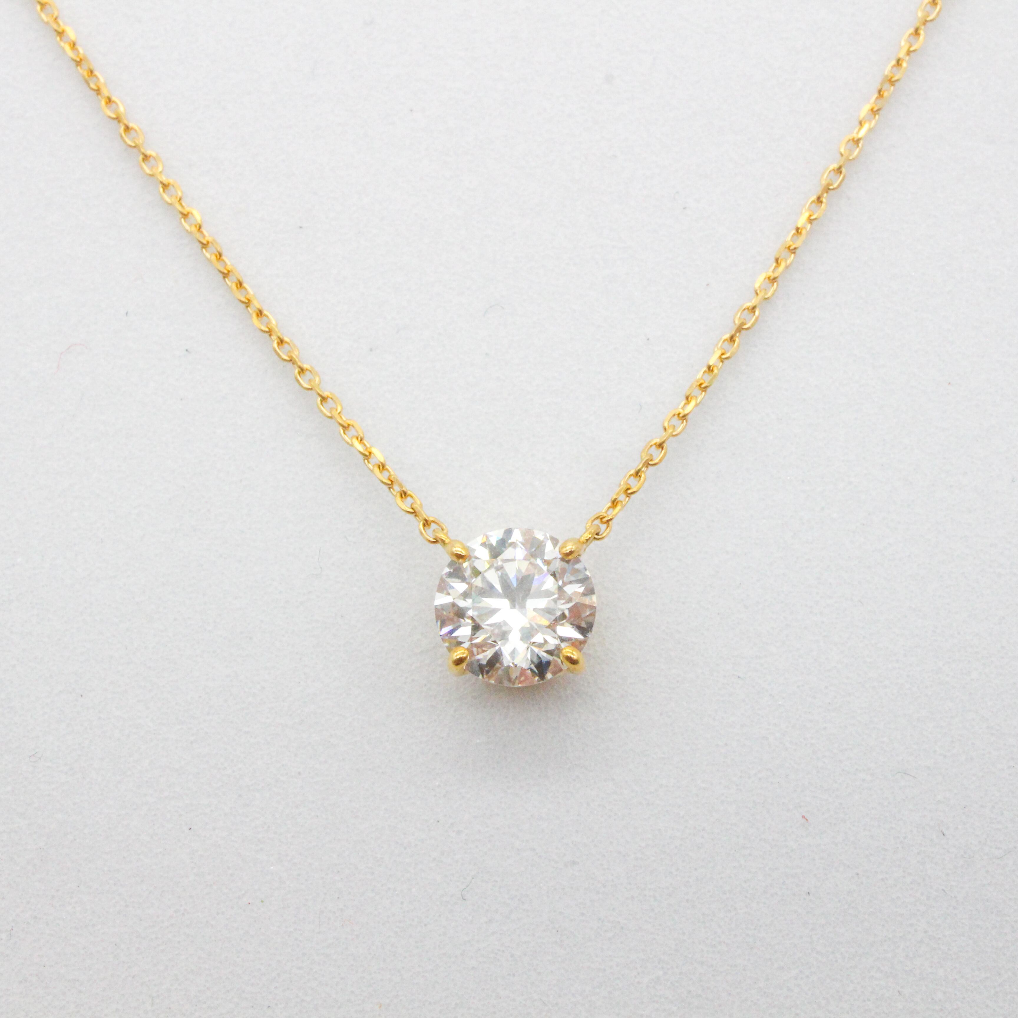 K18YG ラボグロウンダイヤモンドペンダント(1.0ct/D/VS/IGI鑑別書付き)